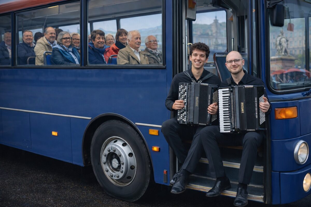 Leistungen: Busfahrt, Livemusik (Akkordeon Duo: Nico Pfeiffer & Markus Gellrich) , Moderation und Begrüßungsgetränk